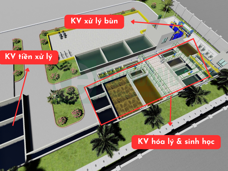 Đây là khu vực diễn ra các phản ứng hóa học quan trọng để loại bỏ cặn lơ lửng (TSS) và kim loại nặng.