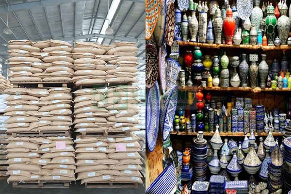 长石: 在烧成过程中起到重要作用,能促进反应,本身几乎不具塑性(即使有也极低),质地坚硬不易粉碎,为配料提供碱并降低烧成温度。